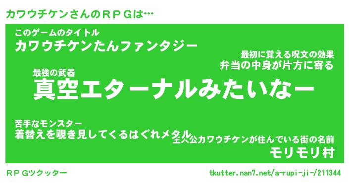 | 男性向けラノベタイトル風あだ名 | 『カワウチケンアートオンライン』 |