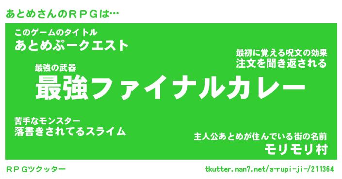 | 男性向けラノベタイトル風あだ名 | 『アトメアートオンライン』 |