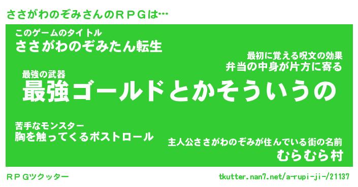 | 男性向けラノベタイトル風あだ名 | 『ササガワノゾミアートオンライン』 |