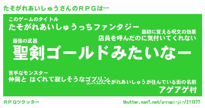 | ヒーロー風カッコイイあだ名 | 『スーパータソガレアイシュウ』 |