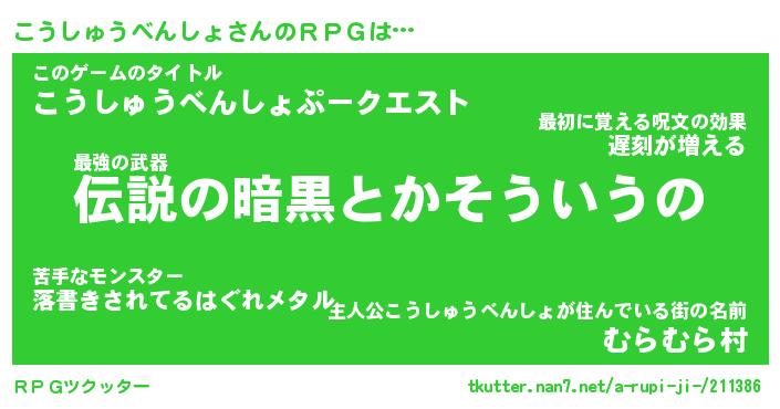 | 男性向けラノベタイトル風あだ名 | 『こうしゅうべんしょの憂鬱』 |