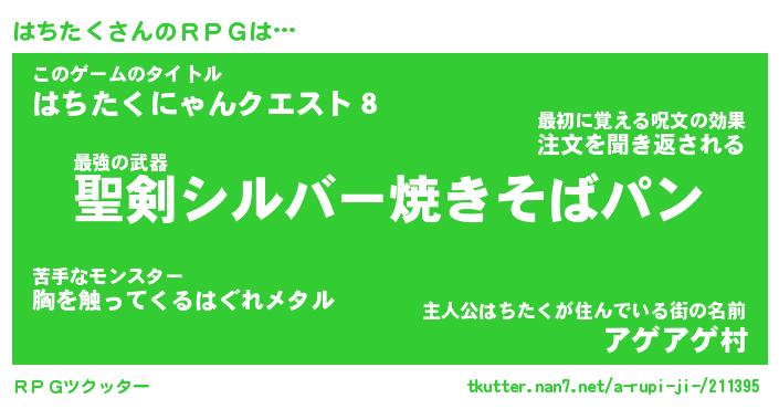 | 男性向けラノベタイトル風あだ名 | 『はちたくの憂鬱』 |
