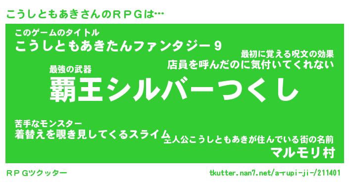 | 男性向けラノベタイトル風あだ名 | 『コウシトモアキアートオンライン』 |