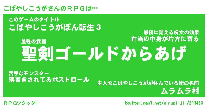 | 男性向けラノベタイトル風あだ名 | 『こばやしこうがの憂鬱』 |