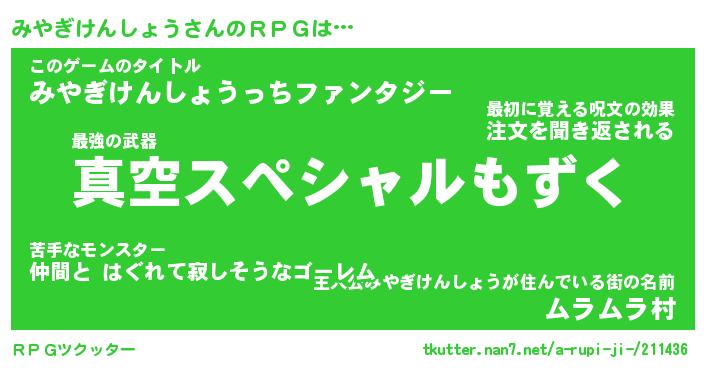 | 男性向けラノベタイトル風あだ名 | 『ミヤギケンショウアートオンライン』 |