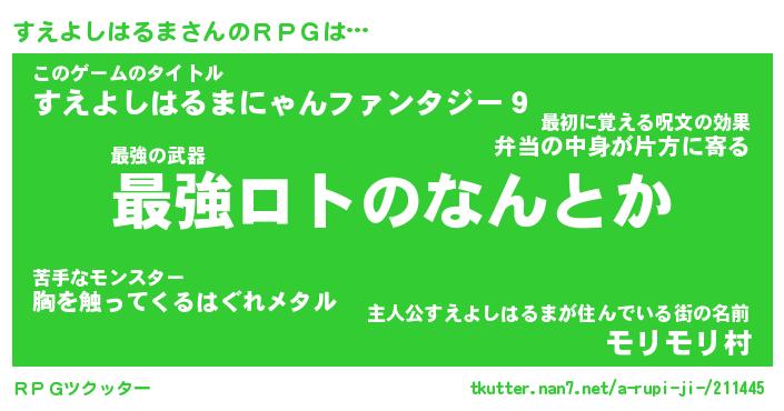 | 男性向けラノベタイトル風あだ名 | 『スエヨシハルマアートオンライン』 |