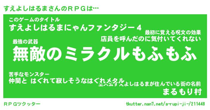 | 料理風あだ名 | 『節約★すえよしはるまと油揚げの玉子丼』 |