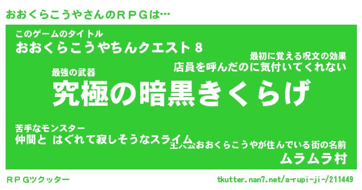 | 男性向けラノベタイトル風あだ名 | 『オオクラコウヤアートオンライン』 |