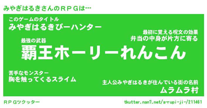 | 伝説のあだ名 | 『封印されし傭兵みやぎはるき』 |