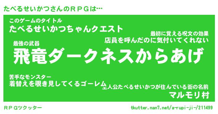 | 男性向けラノベタイトル風あだ名 | 『タベルセイカツアートオンライン』 |