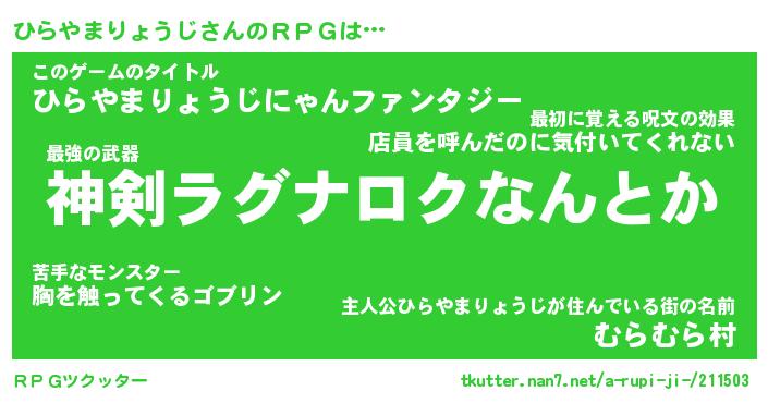 | 男性向けラノベタイトル風あだ名 | 『ひらやまりょうじの憂鬱』 |