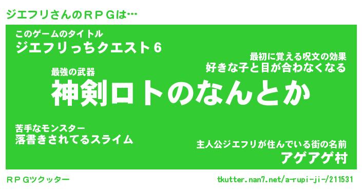 | ファンタジー風あだ名 | 『ジエフェル』『エターナルジエフリー』 |