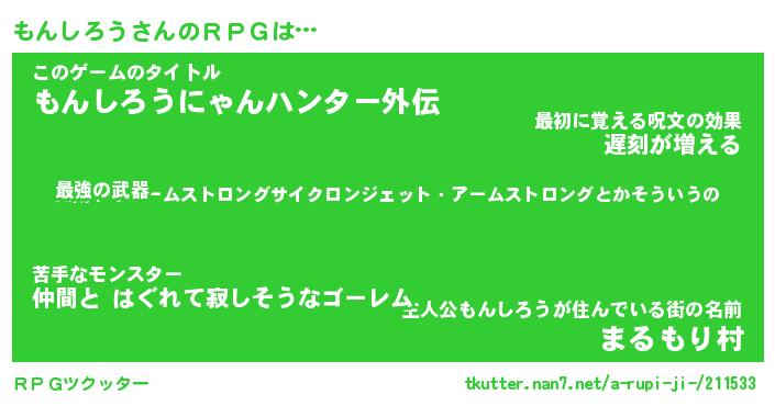 | 男性向けラノベタイトル風あだ名 | 『もんしろうの憂鬱』 |