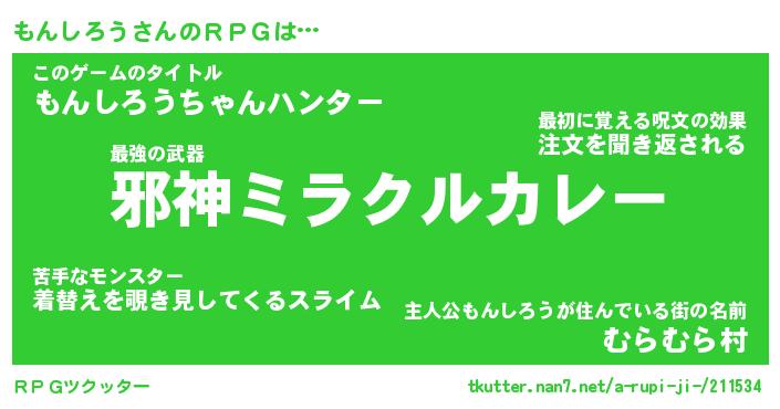 | ファンタジー風あだ名 | 『モンフェル』『エターナルモンシロウー』 |