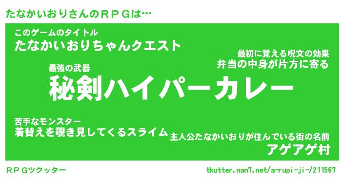 | ヒーロー風カッコイイあだ名 | 『スーパータナカイオリ』『天弓騎士タナ』 |
