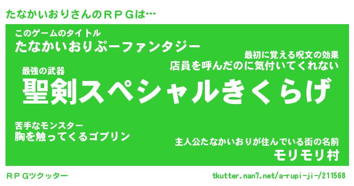 | 胡散臭い通販商品みたいなあだ名 | 『必ず成功するブレスレット…その名も「たなかいおり」』 |