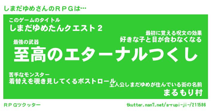 | ファンタジー風あだ名 | 『シマフェル』『エターナルシマダユメー』 |