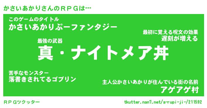 | 男性向けラノベタイトル風あだ名 | 『カサイアカリアートオンライン』 |