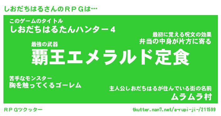 | 男性向けラノベタイトル風あだ名 | 『シオダチハルアートオンライン』 |