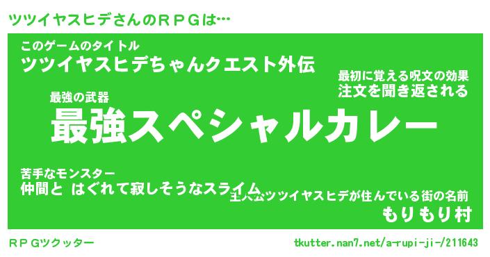| 男性向けラノベタイトル風あだ名 | 『ツツイヤスヒデアートオンライン』 |