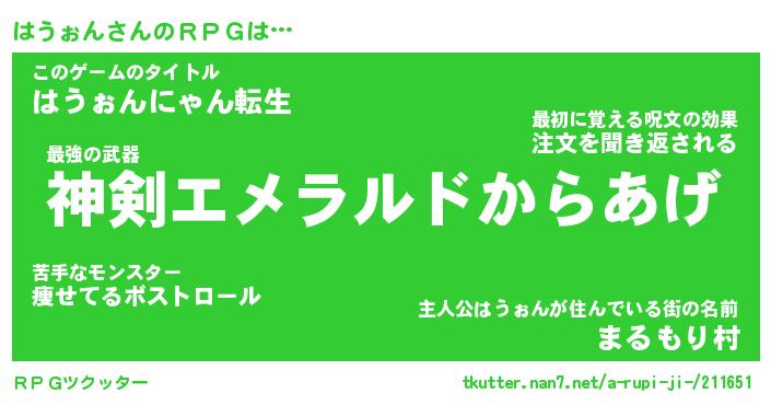 | 男性向けラノベタイトル風あだ名 | 『はうぉんの憂鬱』 |
