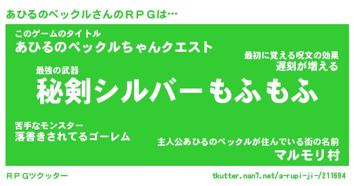 | 胡散臭い通販商品みたいなあだ名 | 『必ず成功する水晶球…その名も「あひるのペックル」』 |