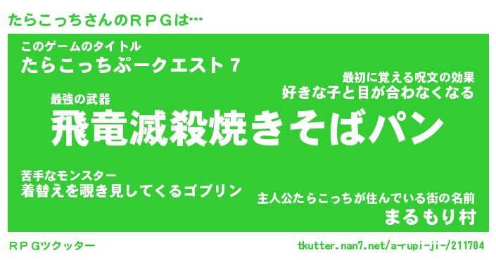 | ファンタジー風あだ名 | 『タラフェル』『エターナルタラコッチー』 |