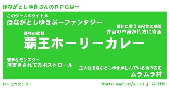 | 男性向けラノベタイトル風あだ名 | 『ホナガトシユキアートオンライン』 |