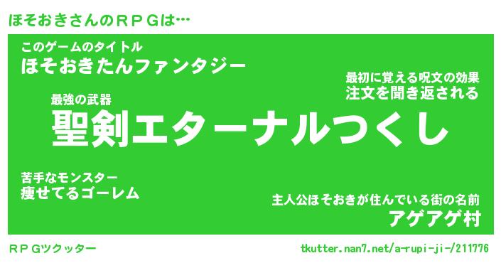 | 伝説のあだ名 | 『伝説の傭兵ほそおき』 |