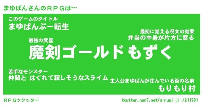 | 胡散臭い通販商品みたいなあだ名 | 『必ず成功する霊験あらたかなお札…その名も「まゆぱん」』 |