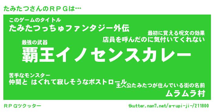 | 男性向けラノベタイトル風あだ名 | 『タミタツアートオンライン』 |