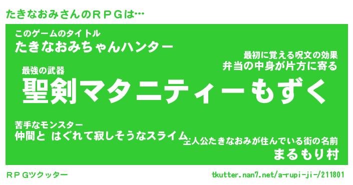 | ファンタジー風あだ名 | 『タキフェル』『エターナルタキナオミー』 |