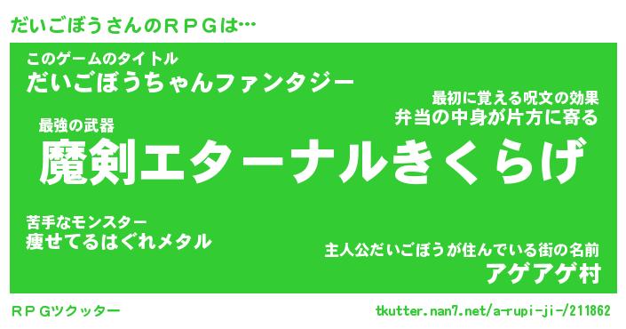 | 胡散臭い通販商品みたいなあだ名 | 『必ず成功する水晶球…その名も「だいごぼう」』 |
