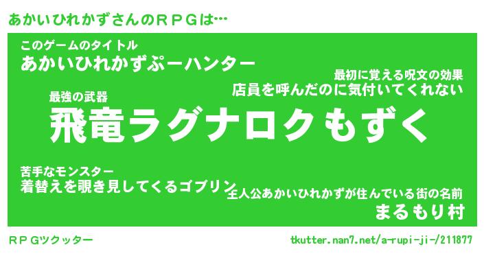 | 男性向けラノベタイトル風あだ名 | 『アカイヒレカズアートオンライン』 |