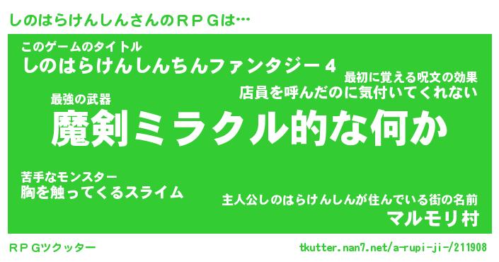 | 胡散臭い通販商品みたいなあだ名 | 『必ず成功するブレスレット…その名も「しのはらけんしん」』 |