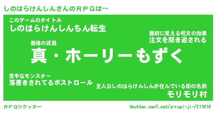 | 胡散臭い通販商品みたいなあだ名 | 『億万長者になれる水晶球…その名も「しのはらけんしん」』 |