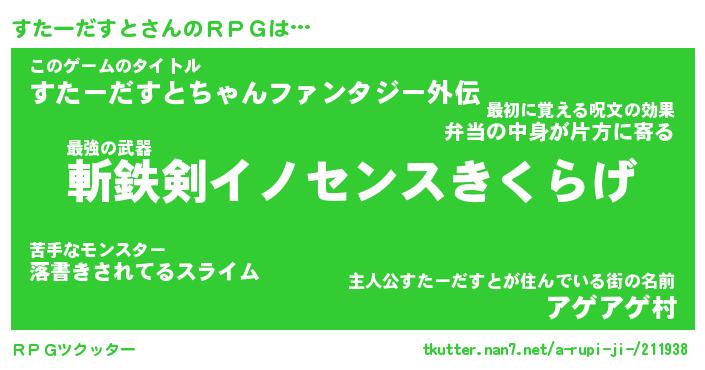| 男性向けラノベタイトル風あだ名 | 『すたーだすとの憂鬱』 |