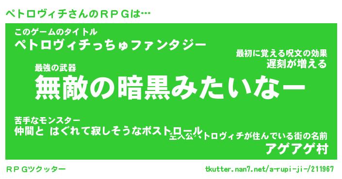 | ヒーロー風カッコイイあだ名 | 『スーパーペトロヴィチ』『幻影騎士ペト』 |