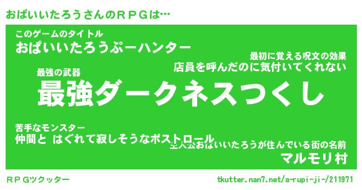 | 男性向けラノベタイトル風あだ名 | 『オパイイタロウアートオンライン』 |