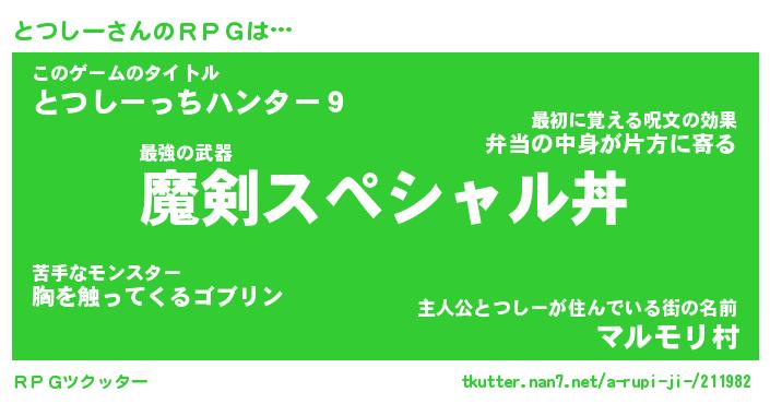 | 伝説のあだ名 | 『伝説の竜騎士とつしー』 |