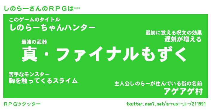 | 伝説のあだ名 | 『封印されし竜騎士しのらー』 |