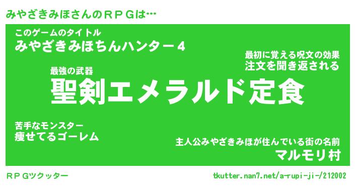 | ヒーロー風カッコイイあだ名 | 『スーパーミヤザキミホ』『暗黒騎士ミヤ』 |