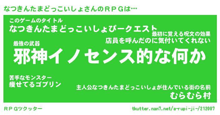 | 胡散臭い通販商品みたいなあだ名 | 『億万長者になれる霊験あらたかなお札…その名も「なつきんたまどっこいしょ」』 |