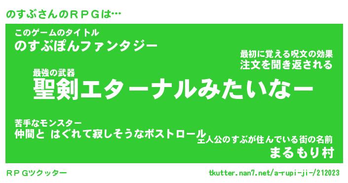 | 男性向けラノベタイトル風あだ名 | 『のすぶの憂鬱』 |