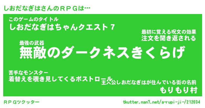 | 男性向けラノベタイトル風あだ名 | 『シオダナギハアートオンライン』 |