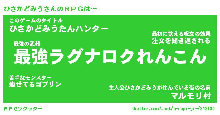 | 男性向けラノベタイトル風あだ名 | 『ヒサカドミウアートオンライン』 |