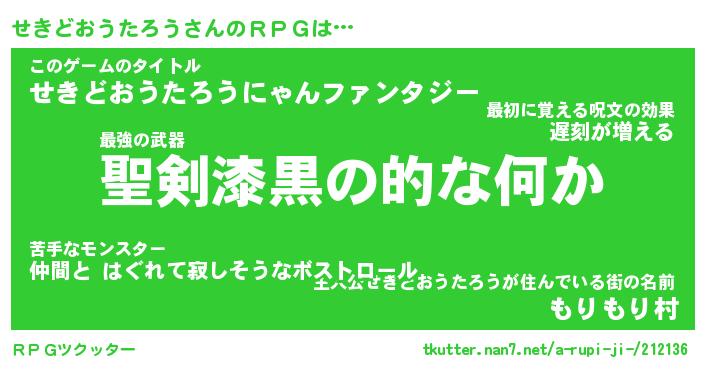 | 男性向けラノベタイトル風あだ名 | 『せきどおうたろうの憂鬱』 |