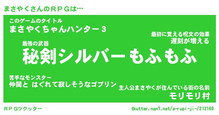 | ファンタジー風あだ名 | 『マサフェル』『エターナルマサヤクー』 |