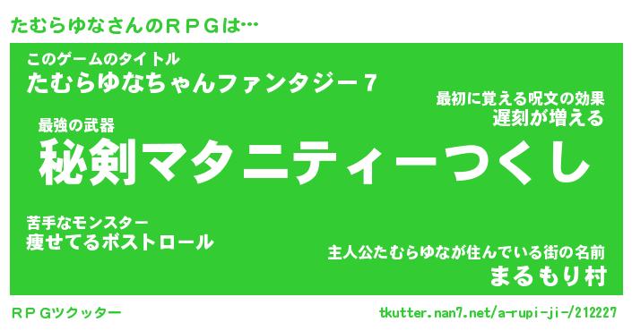 | ファンタジー風あだ名 | 『タムフェル』『エターナルタムラユナー』 |