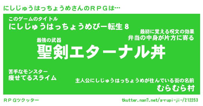 | 胡散臭い通販商品みたいなあだ名 | 『必ず成功する水晶球…その名も「にしじゅうはっちょうめ」』 |